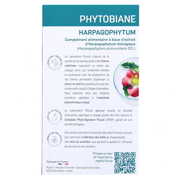 Les extraits de Harpagophytum bio présents dans le complément alimentaire Phytobiane Harpagophytum du laboratoire Pileje aide à maintenir la santé des articulations.
