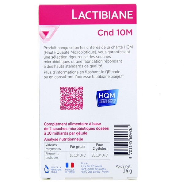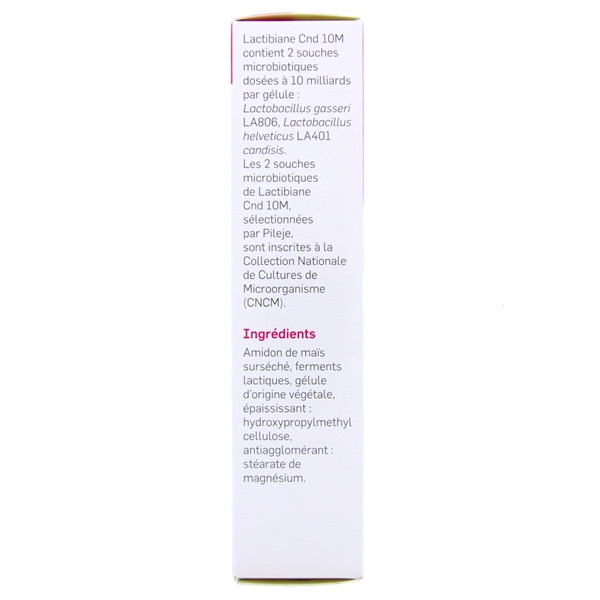 Lactibiane CND 10M du laboratoire Pileje est un complément alimentaire est formulé à base de 2 souches microbiotiques dosée à 10 milliards par gélule.