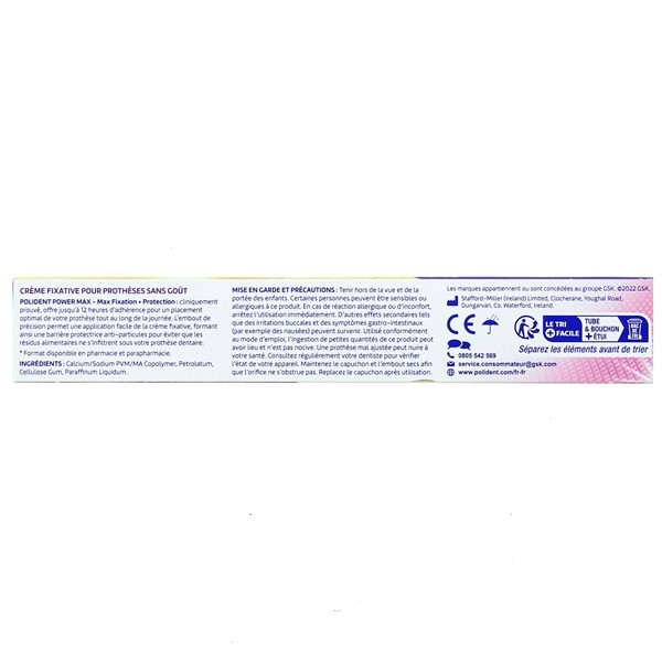 Fabriquée par le laboratoire GSK — GlaxoSmithKline, cette crème de fixation fait partie de la gamme de produits POLIDENT. Elle est conditionnée en tube de 70 g dans un étui en carton.