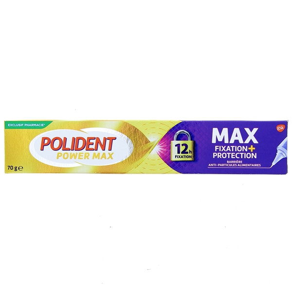 La crème Polident Power Max Fixation + Protection est une crème fixative pour les prothèses dentaires, partielles ou complètes. Elle constitue aussi une barrière contre les particules alimentaires.