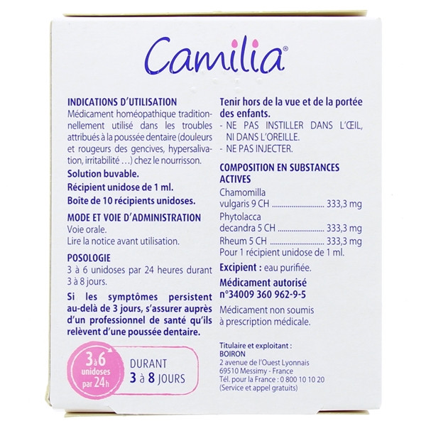 Camilia est un médicament homéopathique pour les troubles attribués à la dentition chez le nourrisson.