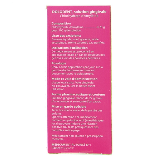 Mettre un peu de solution sur un doigt et masser doucement les gencives pendant 2 à 3 minutes.