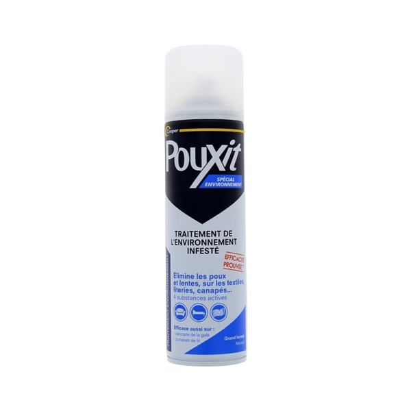 Pouxit Environnement est un spray qui élimine les poux et les lentes sur les textiles, les literies, les canapés... il contient 4 substances actives à l'efficacité prouvée contre les poux et les lentes. Pouxit Environnement est le bon complément au traitement des poux des cheveux. Il permet d'éviter les phénomènes de transmission. Efficace aussi contre les punaises de lit.