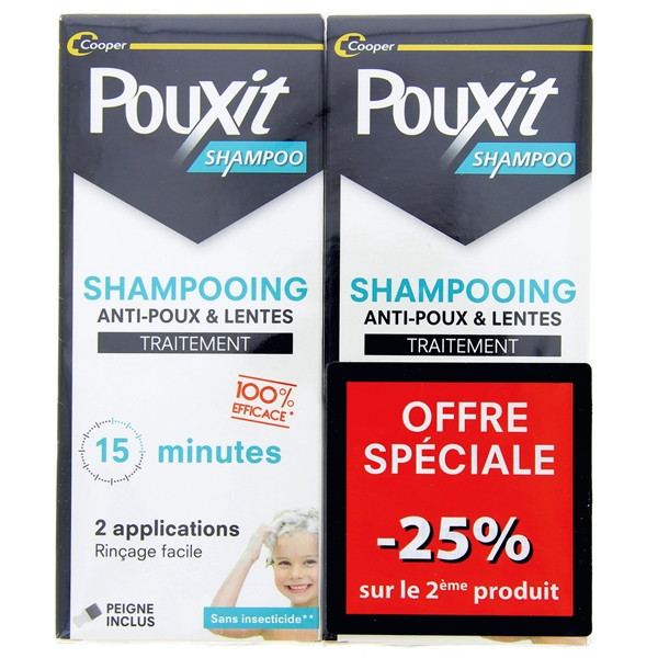 Pouxit Shampoo Shampooing anti-poux & lentes est un traitement 100 % efficace. Sa formule douce, sans insecticide, avec de l'huile de coco bouche les orifices respiratoires et excrétoires du pou et de la lente entrainant ainsi leur mort.