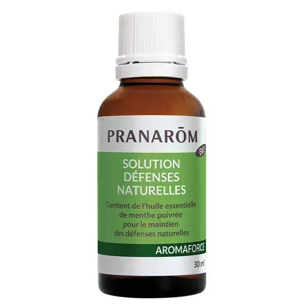 Aromaforce Solution Défenses Naturelles Bio de Pranarôm est conditionnée dans un flacon de 30 ml.