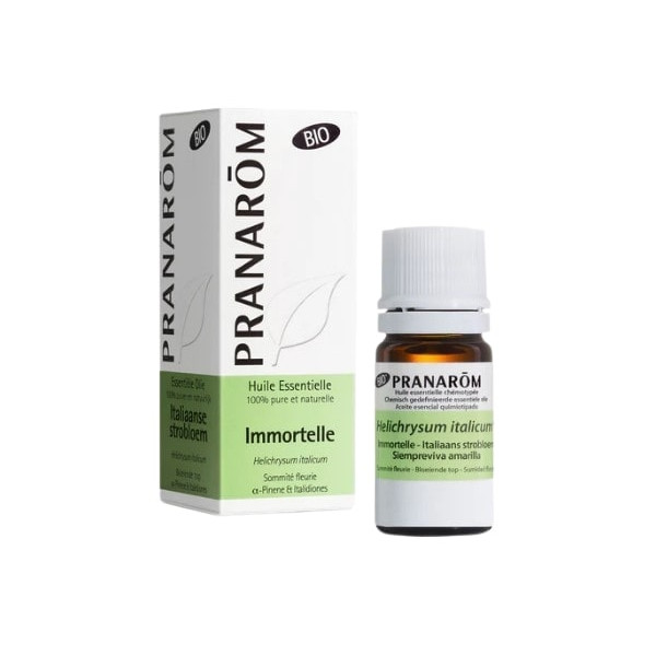 L'huile essentielle Immortelle de Pranarôm est apaisante et stimulante. Elle améliore la circulation sanguine tout en réparant parfaitement la peau (bleus, enflures ou rougeurs).