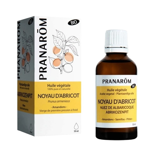L'huile végétale au Noyau d'Abricot Bio de Pranarôm comprend des ingrédients naturels qui régénèrent, revitalisent et redonnent de l'éclat à la peau.