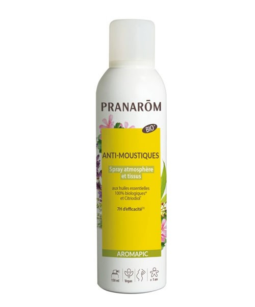 Le spray anti-moustique Atmosphère & Tissus Bio de Pranarôm est 2 en 1. Ce spray s'utilise aussi bien sur les tissus que dans l'atmosphère pour repousser les moustiques. Efficace pendant 7 heures.