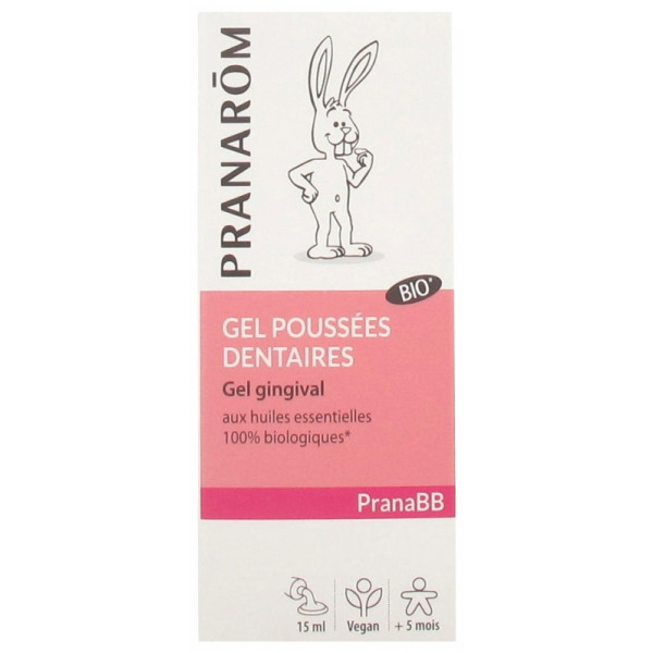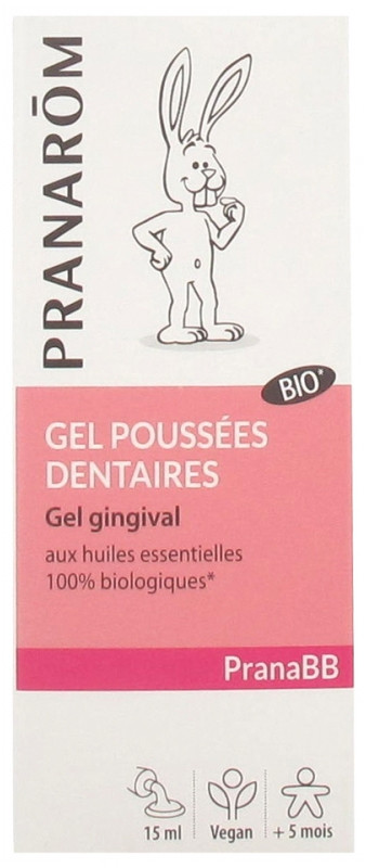 PranaBB Gel Poussées Dentaires de Pranarôm est un gel gingival conçu pour soulager les douleurs et les pleurs de votre bébé (dès 5 mois) liées à ses premières dents. Il permet de réconforter bébé lorsque ses dents lui font mal par un massage des gencives au goût agréable.
