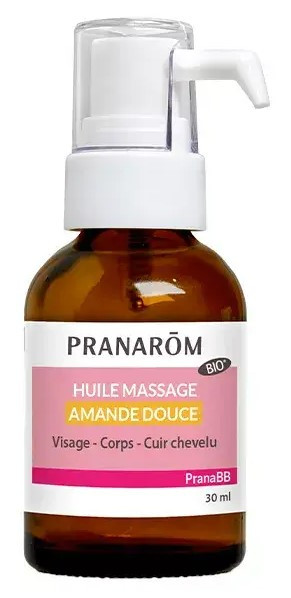 PranaBB Huile de massage Amande Douce Bio 30ml est un soin développé par Pranarôm pour nourrir la peau sèche du visage, du corps et du cuir chevelu de bébé. Ce produit d’aromathérapie facilite également l’élimination des croûtes de lait chez le petit. Il est conçu pour les enfants de plus de 3kg.