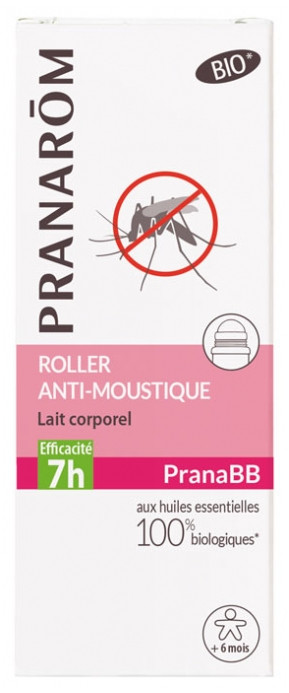 Pranarôm PranaBB Roller Anti-Moustique Bio est un lait corporel répulsif aux huiles essentielles 100% biologiques, efficace 7 heures, à l'odeur agréable qui protège la peau de bébé des piqûres : moustiques européens et tropicaux.