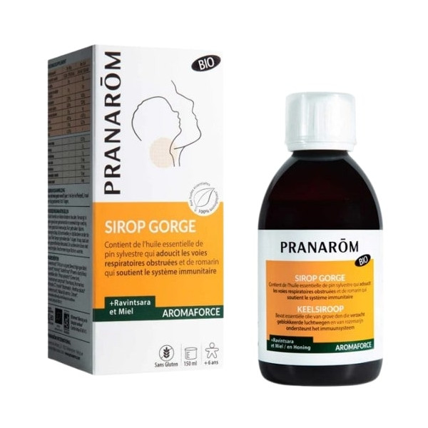 Gorge Bio Aromaforce 150 ml de Pranarom est un sirop ayant pour rôle d’adoucir les voies respiratoires et de soutenir le système immunitaire.