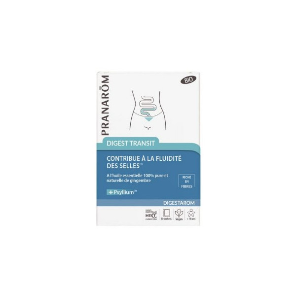 Digestarom Digest Transit Bio de Pranarôm est un complément alimentaire riche en fibre, formulé à base d'huile essentielle de gingembre et enrichi en Psyllium. Digest Transit contribue à la fluidité des selles et aide à retrouver un bon transit intestinal.