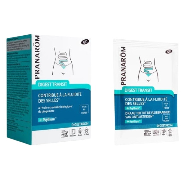 - Mode d’emploi : diluer 1 sachet du Digestarom Digest Transit dans un liquide (un verre d’eau ou du jus de pomme), puis boire après le repas.