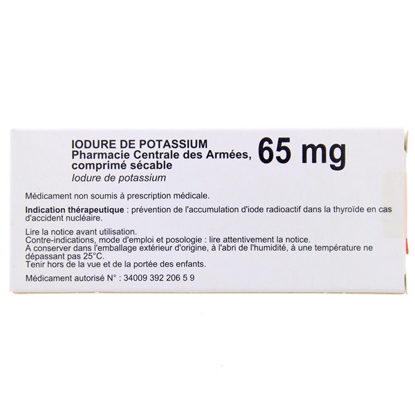 Ce médicament doit être pris immédiatement, dès l'alerte donnée. Un délai d'une heure après l'arrivée du nuage radioactif est suffisant pour diminuer considérablement l'effet préventif de ce médicament. Il doit donc être conservé dans un endroit sûr et facile d'accès (mais hors de portée des enfants).