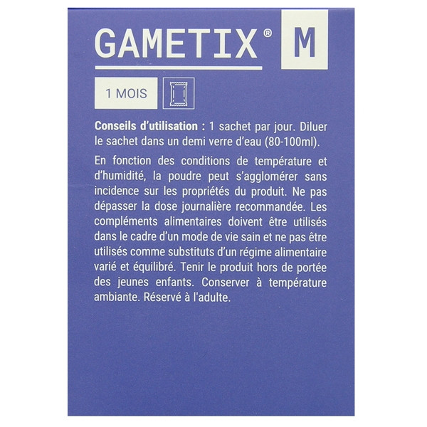 Présenté sous forme 30 de sachets individuels, Gamétix M peut être utilisé de manière simple et pratique au quotidien.