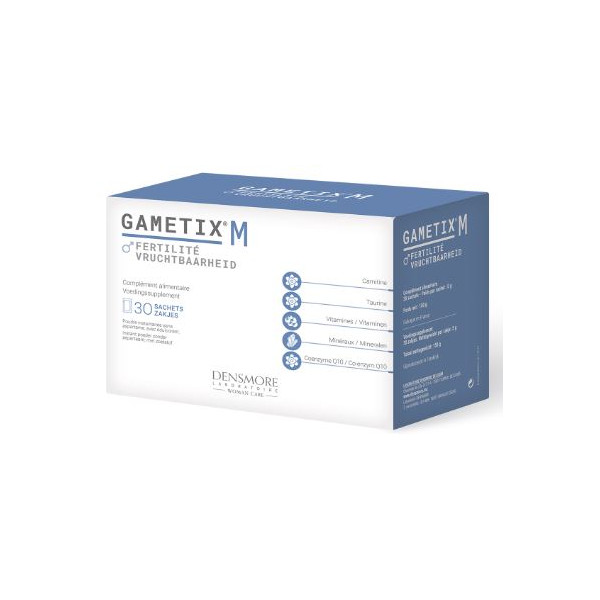 Le complément alimentaire Gametix M Fertilité proposé par les laboratoires Densmore est recommandé pour aider l'organisme à stimuler efficacement la fertilité et à contribuer une reproduction normale. L'action combinée du Zinc et du Sélénium permet de favoriser une spermatogenèse normale et donc la reproduction.
