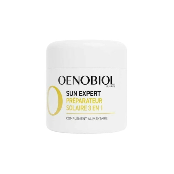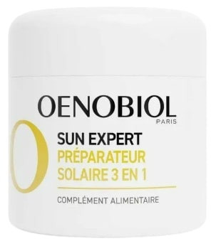 Sun Expert Préparateur Solaire 3en 1 est fabriqué en France par la marque Oenobiol qui propose des compléments alimentaires avec des formules suractivées incluant des vitamines, des minéraux et des antioxydants.