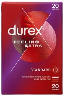 Le préservatif Feeling Extra fait partie des préservatifs fins et extra-lubrifiés de la marque Durex. Il peut procurer des sensations plus douce et de plaisir proche de celles observées sans utilisation de préservatif.