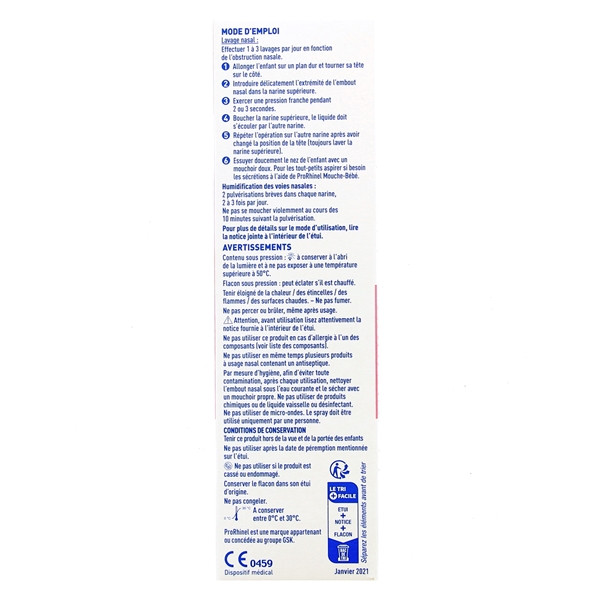 - Effectuer 1 à 3 instillations par jour de Prorhinel Spray Nasal Nourrisson Jeunes Enfants en fonction de l’état d’obstruction du nez du petit.