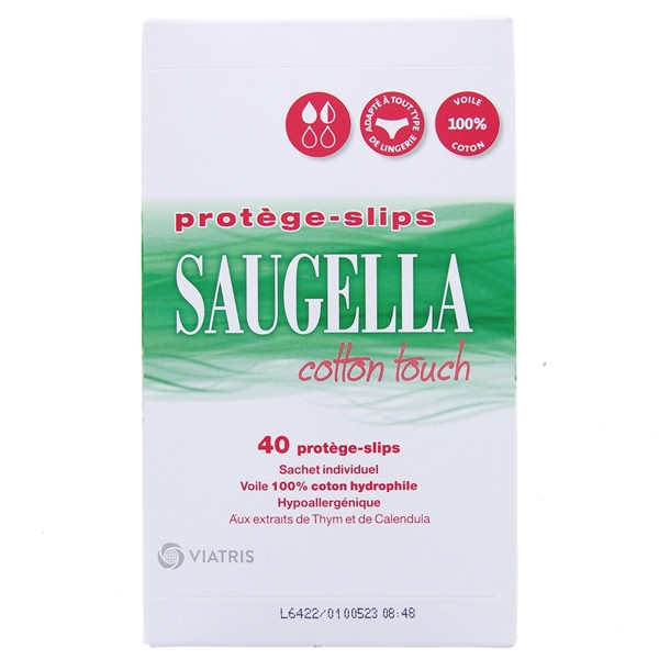 Les protège-slips Cotton Touch Saugella sont disponibles en boîte de 40 sachets individuels.