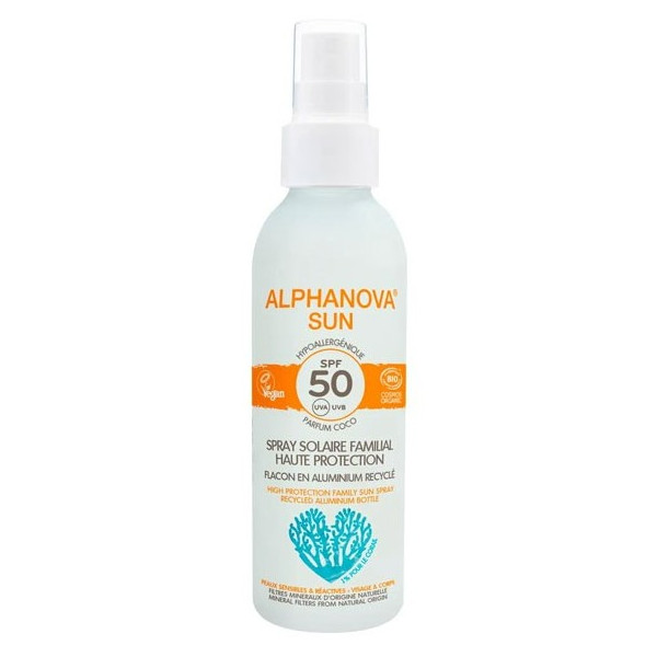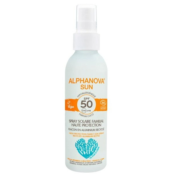 Idéal pour un passer un bon moment à la plage, le Spray Solaire Familiale Hypoallergénique SPF50 150 g d’Alphanova est adapté à toutes les peaux.