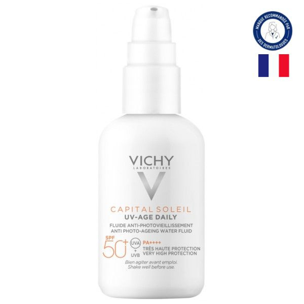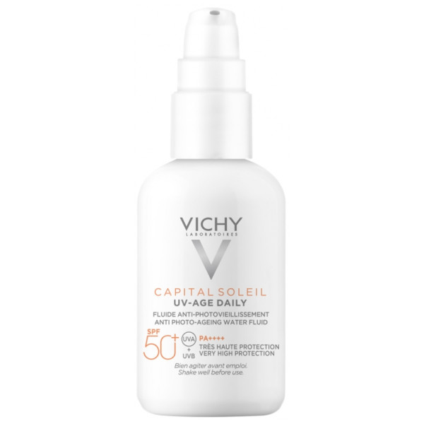 - Pour garantir le maximum d’efficacité, appliquez le Capital Soleil UV-Age Daily SPF50+ Vichy sur le visage, le cou, et le contour des yeux tous les matins directement après votre routine de soin. Avant l’utilisation, agitez bien le flacon.