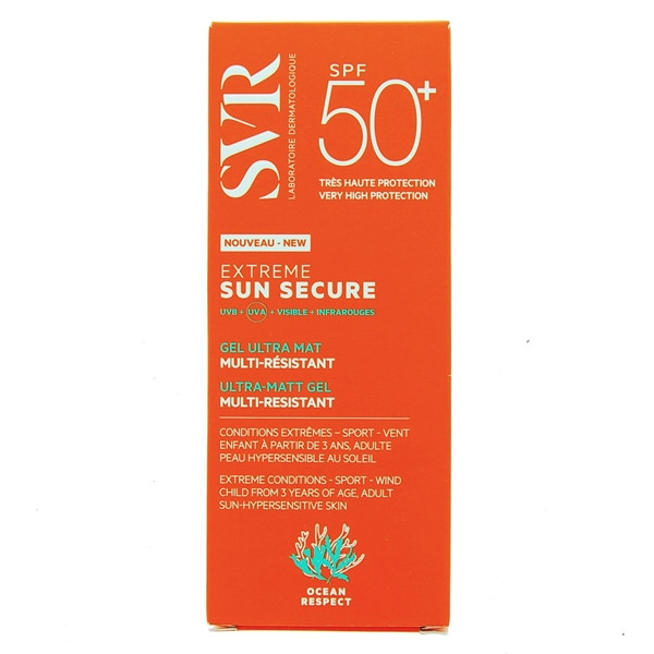Enfin, le Sun Secure Extrême Gel ultra mat SPF50+ 50 ml SVR est un produit du laboratoire dermocosmetique français SVR qui œuvre depuis 1962.