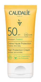 La crème Vinosun Haute Protection SPF50 du laboratoire Caudalie protège efficacement la peau du visage des rayons du soleil tout en ayant une action anti-rides. Texture facile à appliquer et ne laisse pas de traces sur la peau.