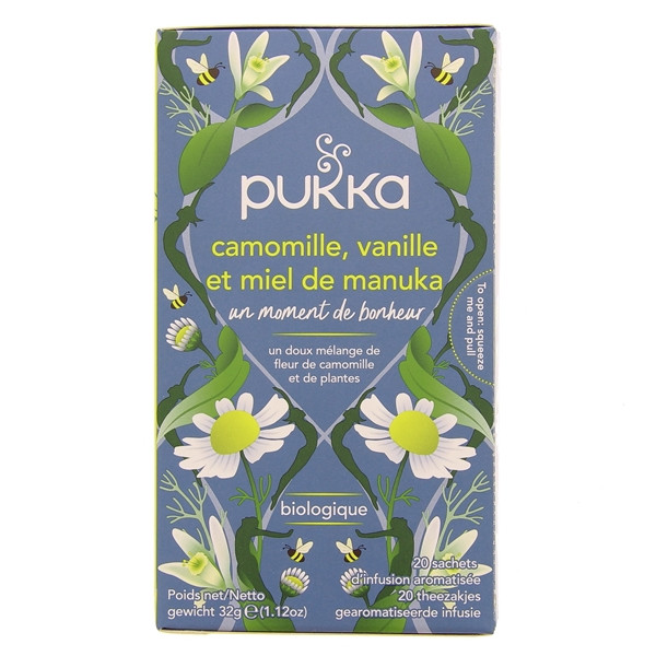 Une infusion, c’est bien plus qu’une boisson chaude. C’est un concentré de vertus, de saveurs et d'arômes. Pukka propose l’infusion Camomille, Vanille & Miel de Manuka Bio pour vous accompagner tout au long de la journée.