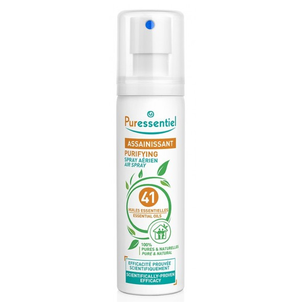 L’air intérieur est souvent plus pollué qu’on ne le pense. Chauffage, humidité, cuisson ou animaux de compagnie peuvent créer un environnement propice aux virus et allergènes. Pour y remédier, Puressentiel propose le Spray Assainissant aux 41 huiles essentielles 75 ml. Il s’agit d’un purificateur d’atmosphère qui peut améliorer la qualité de vie quotidienne.