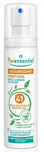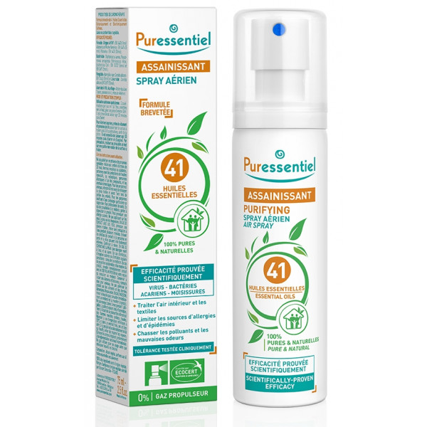 Le spray aérien ASSAINISSANT de Puressentiel comprend des agents actifs qui chassent efficacement les acariens, limitent les sources d'allergies, purifient et désodorisent l'atmosphère.