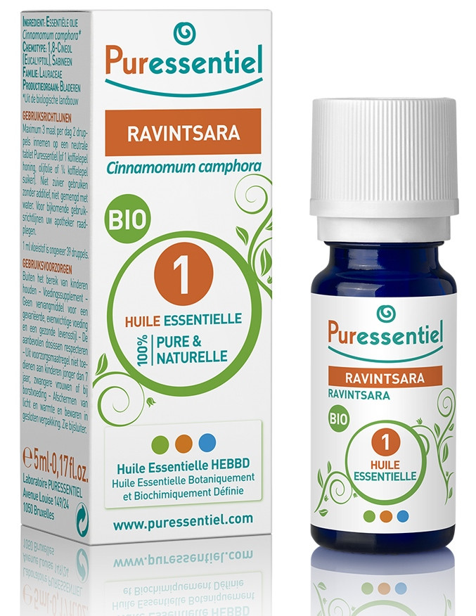 L'huile essentielle Ravintsara Bio de Puressentiel est un complément alimentaire. C'est une huile 100 % pure et naturelle, botaniquement et biochimiquement définie. Elle s'utilise pour renforcer les défenses immunitaires de l'organisme et stimuler le corps et l'esprit. C'est un véritable allié pour l'hiver.
