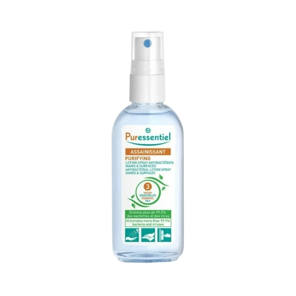 Sachez que les bactéries sont partout. En effet elles peuvent se trouver sur des poignées de porte sur les écrans de téléphone, sur les claviers d’ordinateur ou les boutons d’ascenseur, etc. De plus, elles se propagent rapidement et vous pouvez être contaminé à tout instant. Savez-vous d’ailleurs que vos mains peuvent accueillir des millions de bactéries et que 80 % des microbes se transmettent par elles ? D’où l’importance de les désinfecter régulièrement. Justement, la lotion spray antibactérien 80ml de Puressentiel est une solution efficace pour assainir vos mains tout en prenant soin de votre peau.