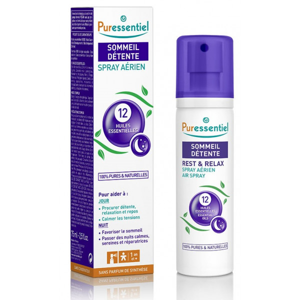 Le spray aérien Puressentiel Sommeil Détente aux 12 huiles essentielles aide à procurer détente, relaxation et repos. Il calme les tensions, favorise le sommeil. Il permet de passer des nuits calmes, sereines et réparatrices.