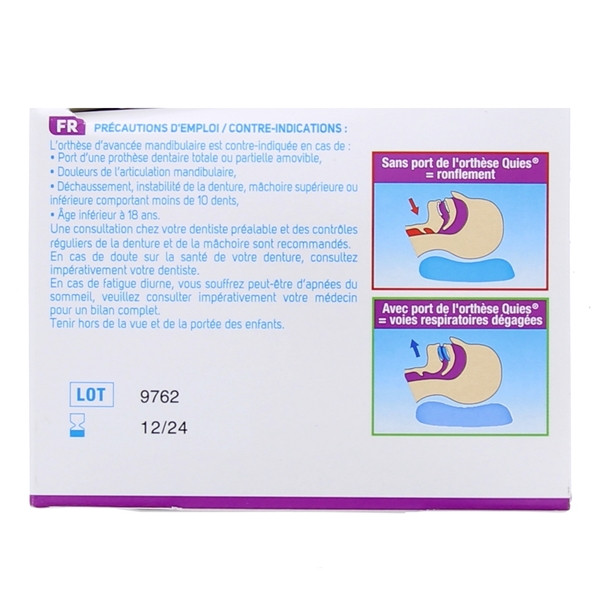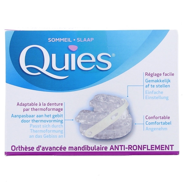 L'orthèse d'avancée mandibulaire Anti-ronflement de Quiès permet de libérer les voies respiratoires afin de lutter contre le ronflement et l'apnée du sommeil modérée.