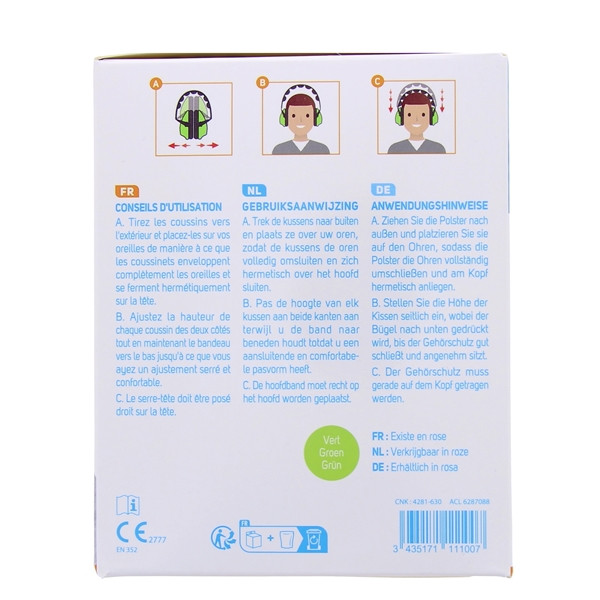 L’autre avantage du Casque anti-bruit enfants Vert x1 Quiès est qu’il est parfaitement ajustable. Ce produit a été élaboré conformément à la norme EN 352. Il est adapté pour les enfants à partir de l’âge de 5 ans.