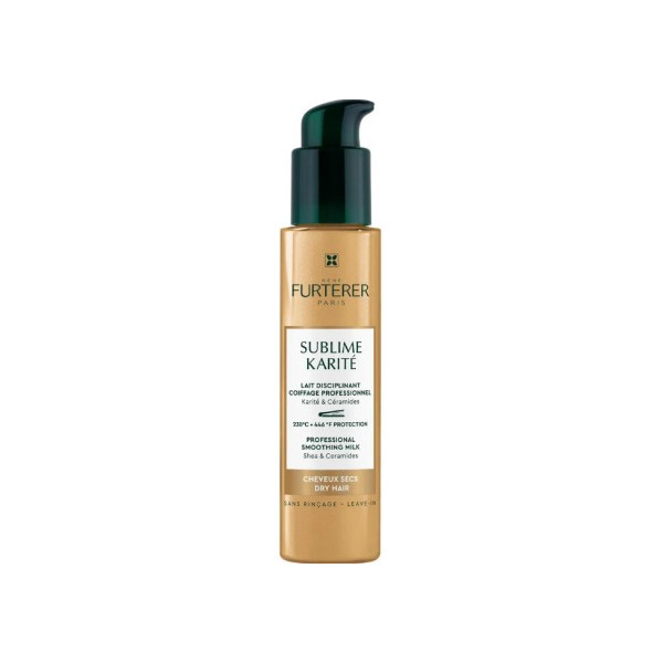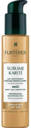 Sublime Karité Lait Disciplinant Coiffage Professionnel 100ml a été développé par la marque René Furterer pour traiter les cheveux secs indisciplinés. Ce produit sans rinçage inspiré des soins professionnels hydrate et gaine durablement la fibre capillaire. Il protège contre la formation de frisottis pendant 48 heures et facilite le coiffage.