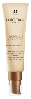 Absolue Kératine Sérum Réparateur Ultime 30ml de la marque René Furterer est destiné aux pointes abîmées et fourchues. Ce soin ultra-concentré sans rinçage répare et protège en profondeur les fibres agressées pour retrouver des pointes en pleine santé.