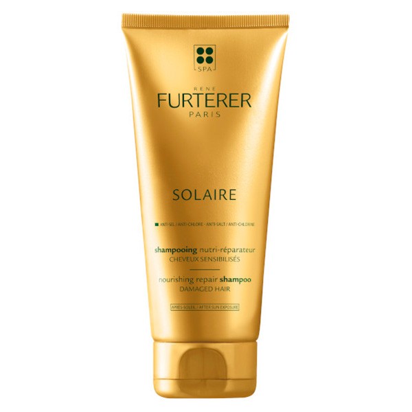 Le Shampooing Nutri-Réparateur de la gamme Solaire de René Furterer est destiné aux cheveux sensibilisés par le soleil. Il nettoie, nourrit et répare les cheveux exposés au soleil ainsi qu'à la mer, à la piscine et au sable.