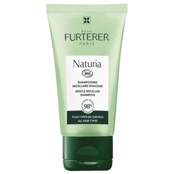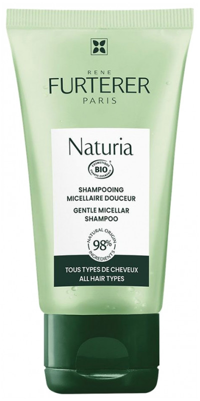 Naturia Shampooing Micellaire Douceur Bio de la marque René Furterer convient à tous les types de cheveux. À base de 98 % d'ingrédients d'origine naturelle, il nettoie en douceur et apporte de la brillance aux cheveux.