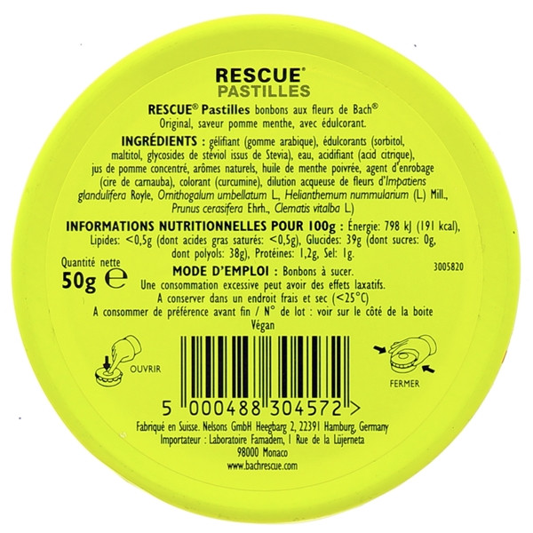 - Avaler 1 à 2 Pastilles Pomme Menthe Rescue avant d’affronter un contexte difficile. Cette dose peut être renouvelée, ni nécessaire, au cours de la journée sans dépasser 6 unités.