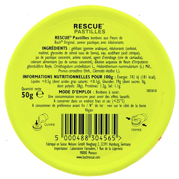 - Lors d’une situation difficile, prendre 1 à 2 Pastilles Pastèque Rescue en les laissant fondre sur la langue. Renouveler la prise aussi souvent que nécessaire, sans toutefois dépasser 6 pastilles dans la journée.