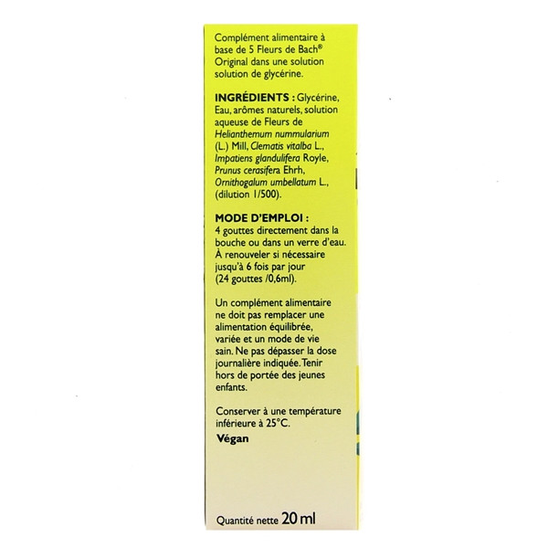 Le mélange de 5 Fleurs de Bach Original du remède Rescue Compte-Gouttes de la marque Rescue est indiqué pour favoriser un temps de calme afin d'aider à faire face aux épreuves du quotidien (entretien, examen, réunion, imprévus, voyage…).