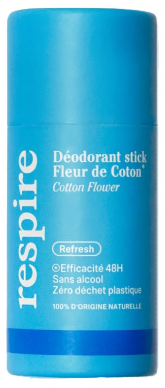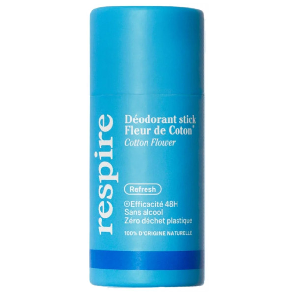 Le Déodorant Stick Fleur de coton Bio avec une efficacité de 48h de la marque Respire lutte efficacement contre les traces et les mauvaises odeurs causées par la transpiration. Ce déodorant est certifié Bio et zéro plastique.