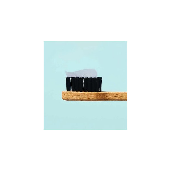 Sa formule se compose d’extraits de feuille de bouleau et d’hydroxyapatite, riches en minéraux présents dans l’email et qui va le protéger. On retrouve également du bicarbonate de soude et des silices, des poudres et de microgranules naturelles aux propriétés exfoliantes qui va éliminer les taches et les plaques dentaires sans agresser vos dents.