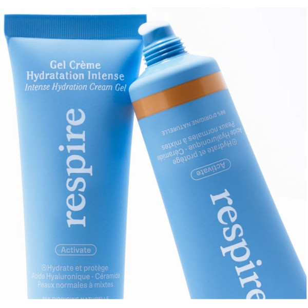 Le Gel Crème Hydratation Intense de la marque Respire est destiné aux peaux normales à mixtes. Formulé avec de l'Acide Hyaluronique et du Céramide, ce gel crème assure une hydratation en profondeur et une protection efficace de la peau.