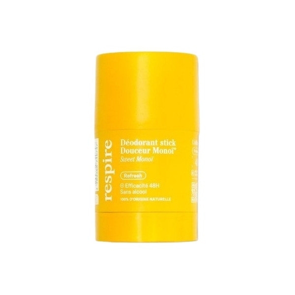 Le Déodorant Stick Monoï avec une efficacité de 48h de la marque Respire permet de lutter efficacement contre l'humidité et les mauvaises odeurs liées à la transpiration. De plus, il laisse sur la peau un agréable parfum ensoleillé de monoï.