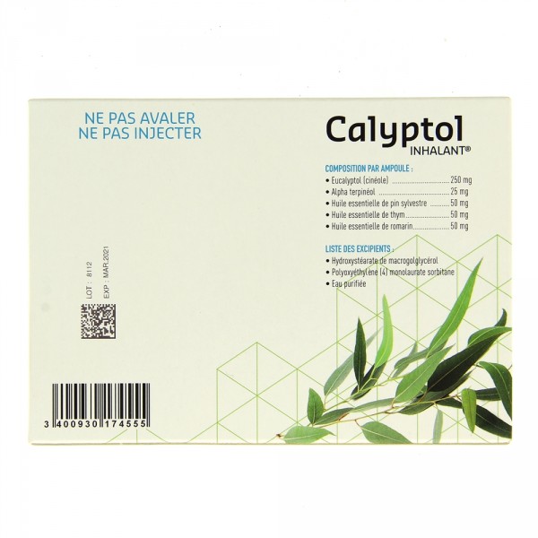Calyptol inhalant est vendu en boîte de 10 ampoules de 5ml.