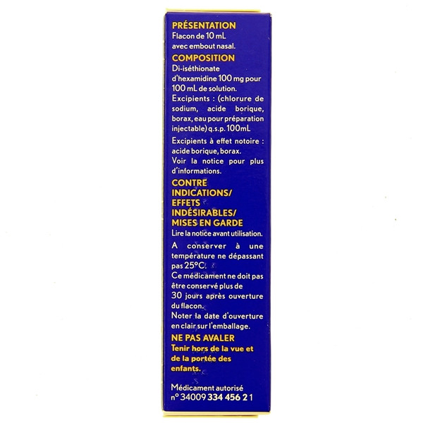 Ce médicament ne doit pas être utilisé en cas d'allergie à l'hexamidine.